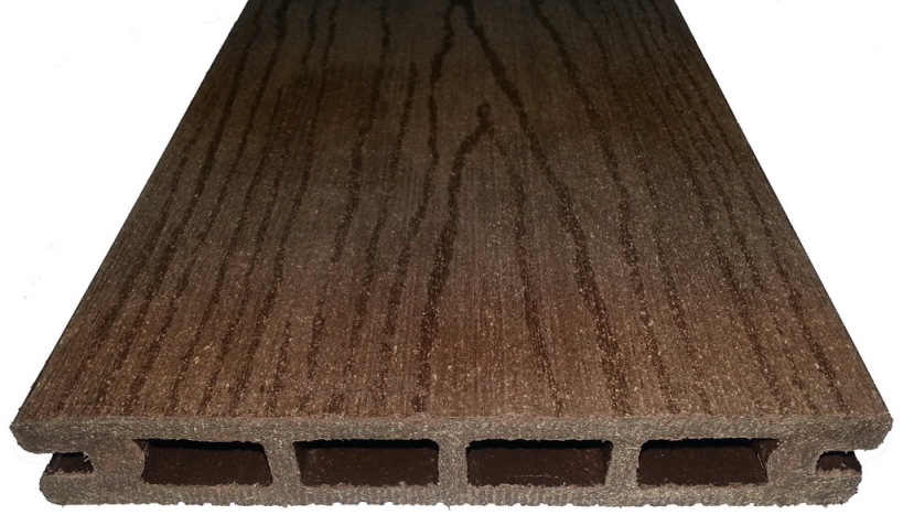Это доска с тиснением поверхности в виде рисунка натурального спиленного дерева, который придает ей стильный дизайн и в то же время предотвращает возможность скольжения. А вторая сторона - это ставший уже традиционным рельефный профиль (поверхность «вельвет»), который может также использоваться как лицевая сторона. Обе стороны имеют специальную обработку с целью предотвращения скольжения, что делает ее идеальной для применения в качестве напольного покрытия на открытом воздухе: террасах (в том числе на беседках, летних кухнях, верандах, летних кафе и на балконах), пирсах, палубах кораблей. Также применяют ее в качестве подшивки карнизов и облицовки зданий, в качестве заборной доски.